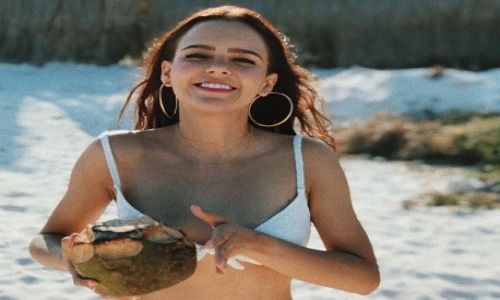 Yuya luce su figura en traje de bano