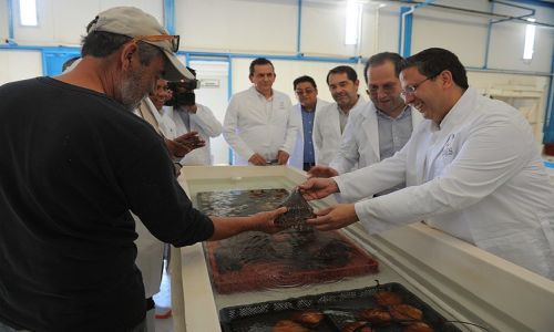 Al recorrer las instalaciones del Centro Reproductor de Especies Marinas del Estado de Sonora, CREMES, dijo que en este lugar se produce principalmente la totoaba, y con las alianzas que se establezcan, se buscará aprovechar las bondades que brindan los mil 200 kilómetros de litoral, además de contar con un excelente capital humano, en conjunto con productores, y con eso realizar el escalamiento para otras especies.
