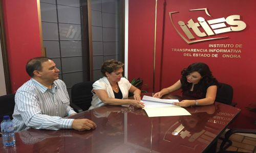 María Dolores Del Río, acompañada del titular de transparencia de Movimiento Ciudadano en Sonora, Oscar Rico Garibaldi, se puso a las órdenes de la titular del ITIES para atender cualquier observación al respecto para estar en cumplimiento con las disposiciones legales.