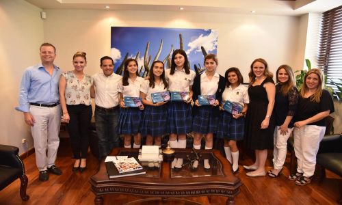 Maloro Acosta recibió en sus oficinas a las alumnas del Colegio Liceo Thezia, quienes aceptaron el reto de producir un video de 3 minutos y medio que le abonara a la reflexión respecto a este problema social, mismo que fue seleccionado como el mejor de los 49 trabajos presentados.