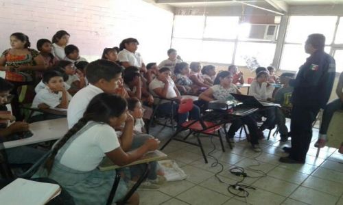 Fueron 60 los niños de la escuela primaria atendidos por el oficial Raymundo Andrade y el Oficial DARE Jaime Candelario Hernández González, integrantes de Programas Preventivos.