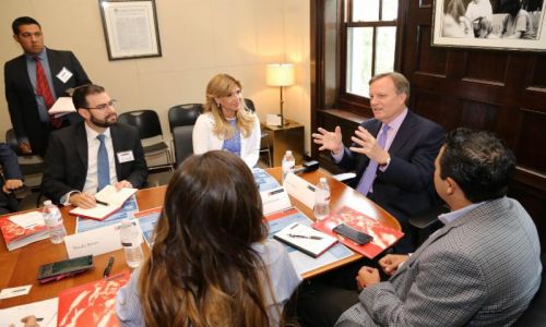Estuvieron presentes Jorge Vidal Ahumada, Secretario de Economía, la Vicepresidenta de Comunicaciones del Washington Center, Carmenchu Mendiola; y la Jefa de la Oficina del Ejecutivo, Natalia Rivera Grijalva.
