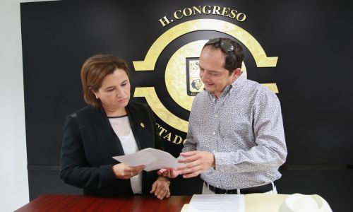 A nombre de la presidenta de la Comisión de Comunicación y Enlace Social, la diputada Lisette López Godínez recibió de manos del periodista Demian Duarte García un documento con sugerencias de reformas al marco jurídico local que garanticen el ejercicio de la libertad de expresión y el derecho a la información, además de un protocolo de seguridad para proteger a los periodistas en Sonora.
