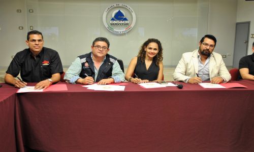 La alianza con el gremio de comerciantes se formalizó en el auditorio de Canaco Servytur Hermosillo. El documento fue firmado por Mirtha Alvarado Verdugo, Presidenta de Canaco Hermosillo; Rubén López Barrera. Presidente de la Unión Comerciantes del Centro de HMO A.C., y Gabriel López Barrera, Presidente de Sinergia Empresarial.