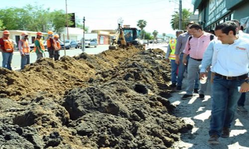 Acompañado por varios colaboradores y el Regidor Raymundo Rodríguez, visitó la zona y recibió una explicación de los trabajos por parte de Renato Ulloa Valdez y Miguel Ángel Santana Corrales, Director General y Gerente de Saneamiento y Alcantarillado de Agua de Hermosillo, respectivamente.