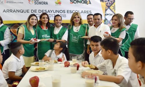 Posteriormente, en la escuela primaria “Venustiano Carranza”, la Gobernadora Pavlovich inició el programa de Desayunos Escolares con el que, previo a sus actividades escolares, diariamente se ofrece alimentos calientes y fríos a 150 mil niños en los 72 municipios.