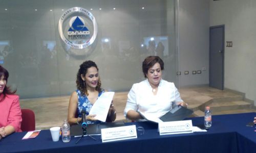 Blanca Luz Saldaña López, Directora del Instituto Sonorense de la Mujer en compañía de la Presidenta de la Canaco en Hermosillo, Mirtha Alvarado Verdugo, comunicó que la firma de ese acuerdo, permitirá replicar el mensaje de los derechos que tienen en este caso las mujeres empresarias y que forman parte de esa cámara empresarial y de la misma forma, que ellas lo den a conocer con sus trabajadoras.