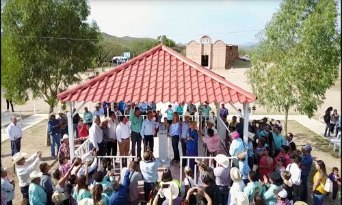 Frente la iglesia que por 380 años atestigua los hechos que marcan la vida de los tuapeños, justo en el kiosco central de la plaza, la Gobernadora Claudia Pavlovich Arellano, acompañada de prácticamente todos los habitantes, hizo historia.