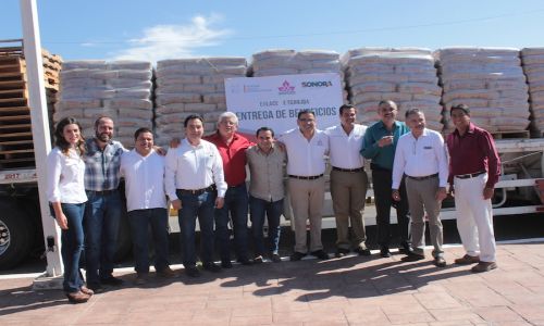 Ante más de 2,000 habitantes de cinco municipios del sur del estado, Rogelio Díaz Brown Ramsburgh, Secretario de Desarrollo Social, SEDESSON y Alí Camacho, Coordinador regional de la Congregación Mariana Trinitaria, hicieron entrega de diversos apoyos, como cuartos rosas, estufas ecológicas, latas de leche, cemento y mortero, así como sillas de ruedas para personas con discapacidad