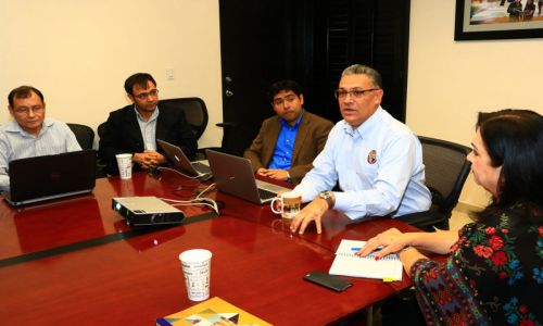Acompañaron en la reunion al rector Velázquez Contreras la secretaria general académica, Guadalupe García de León Peñúñuri; el director de Investigación y Posgrado, Ramón Robles Zepeda; el director de la División de Ingeniería, Martín Antonio Encinas Romero, y el jefe del Departamento de Ingeniería Industrial, Guillermo Cuamea Cruz.