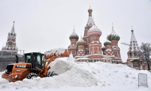 Las excavadoras, camiones y máquinas quitanieve trabajan a destajo para limpiar los adoquines de la Plaza Roja