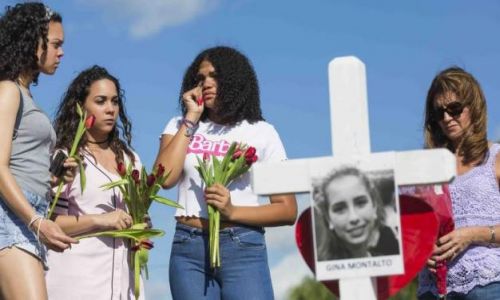 Diecisiete personas vestidas de blanco como ángeles se mantuvieron de pie junto al monumento conmemorativo improvisado afuera de la escuela, antes de colocarse cerca de la entrada. El organizador Terry Decarlo dijo que los disfraces se envían a los lugares donde se presentan tiroteos masivos o desastres para que los sobrevivientes “sepan que los ángeles los cuidan y los protegen”. Muchos de los ángeles del domingo eran sobrevivientes del tiroteo ocurrido en 2016 dentro del club nocturno Pulse, de Orlando, en el que murieron 49 personas, dijo Decarlo.