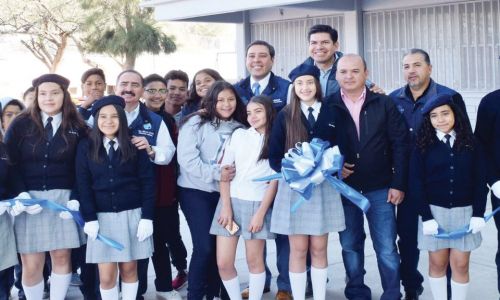 El Presidente Municipal Temo Galindo, entregó otra obra de infraestructura educativa que beneficiará a mil 500 estudiantes de la Escuela Secundaria Estatal Número 38, de la Colonia Héroes.