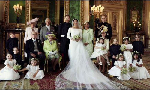 Las fotos, tomadas por Alexi Lubomirski, incluyen un retrato familiar de la pareja con la reina Isabel II, el príncipe Carlos, el príncipe Guillermo, sus cónyuges, la madre de Markle y los niños que sirvieron como pajecitos y damitas de honor.