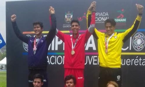 Hermosillo, Sonora, mayo 24 de 2018. El estudiante Miguel Octavio Ramírez Romero, atleta del Colegio de Bachilleres (Cobach) del Estado de Sonora, obtuvo medalla de oro en la prueba de Decatlón en la Olimpiada Nacional Juvenil 2018, celebrada en Querétaro, Querétaro.