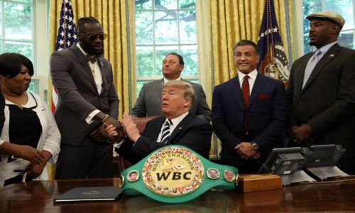 Un video del histórico acto de muestra a Trump, quien fue promotor de boxeo, referirse “a su amigo Sly Stallone”, y elogiar al ex monarca pesado Lennox Lewis e igualmente mencionar al actual poseedor del cetro del WBC, Deontay Wilder, todo ello ante la presencia del presidente del Consejo Mundial de Boxeo, Mauricio Sulaimán, quien estuvo junto al presidente de Scholas Ocurrentes México, Héctor Sulaimán.