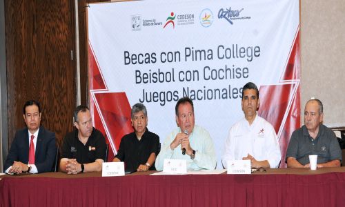 Hermosillo, Sonora, junio 7 de 2018.- Producto de los trabajos de la Comisión Sonora-Arizona, la Secretaría de Educación y Cultura (SEC) en coordinación con la Comisión del Deporte del Estado de Sonora (CODESON), beneficiará a jóvenes beisbolistas sonorenses con becas en el Pima Community College de Arizona, anunció Onésimo Mariscales Delgadillo.