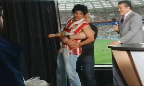 Fue durante el partido Alemania vs. México en el estadio Luzhniki, que el comediante mexicano intentó hacer de las suyas.