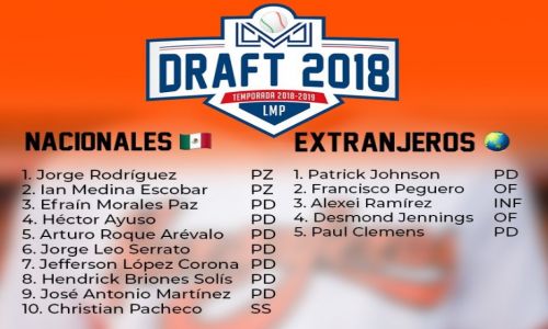 Hermosillo seleccionó a 10 jugadores en el draft de jugadores mexicanos 2018 de los cuales 9 fueron lanzadores