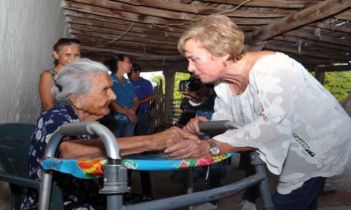 La Presidenta del Sistema DIF Sonora, Margarita Ibarra Platt, recorrió las comunidades de Masiaca, Tierra Blanca y Tesia en Navojoa para escuchar la situación de los damnificados y entregar alimento, agua embotellada, prendas de vestir, cobijas y pañales.
