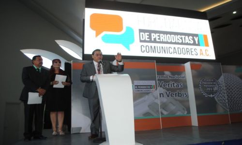 El premio “Veritas in Verbis” cuyo significado es “Verdad en la Palabra” es un reconocimiento a los trabajos más sobresalientes de los periodistas que laboran para medios regionales o para aquellos que ejerzan la profesión independientemente, dijo Rafael Cano Franco, presidente del Foro Nacional de Periodistas y Comunicadores de México.