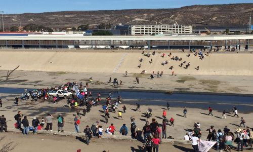Baja California.- Un grupo de entre 500 y 700 migrantes centroamericanos, en su mayoría de origen hondureño, intentaron ingresar a los Estados Unidos en las inmediaciones de la garita de “El Chaparral”, en Tijuana, Baja California.