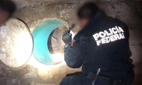 A través de un video que la Policía Federal subió a redes sociales esta mañana, agentes de la corporación muestran el narcotúnel que está disimulado con una puerta circular, que al abrir da paso a un pasillo que llega hasta al lado de Arizona, Estados Unidos.