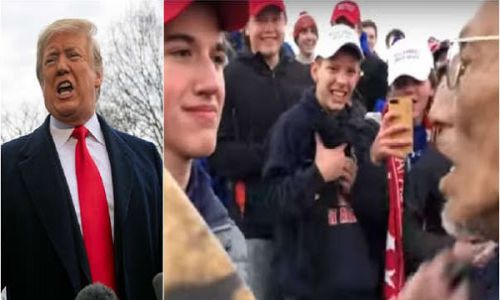 En la grabación puede verse al activista y veterano de la guerra de Vietnam Nathan Phillips realizando un canto tradicional mientras decenas de estudiantes se burlan de él; uno de ellos, luciendo la cachucha que usó Trump en su campaña con la leyenda ‘Make America Great Again’ (Hacer a Estados Unidos grande de nuevo), le cierra el paso y lo observa con un semblante burlón y desafiante.