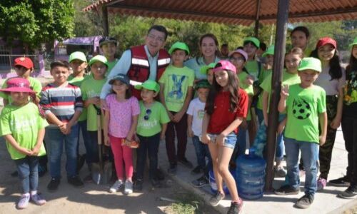 Hermosillo, Sonora.- Como parte de las actividades que realiza a favor de la comunidad, el Voluntariado Infantil de la Secretaría de Salud, plantó alrededor de 30 árboles en el parque de la colonia Hacienda de la Flor en Hermosillo.