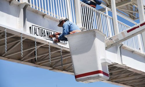Hermosillo, Sonora, 24 de abril de 2019.- Con el fin de evitar accidentes por el paso de vehículos de altura excesiva bajo el puente peatonal de la calle Américas y el Bulevar Luis Encinas y el puente deprimido ubicado a unos metros sobre esta última vialidad, personal de CIDUE reforzó la señalización preventiva en el lugar.