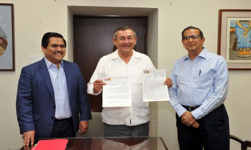 Presentes en la firma de convenio, Natalia Rivera Grijalva, jefa de la Oficina del Ejecutivo Estatal; Carmen Carballo Cabanillas, coordinadora ejecutiva de la Comisión Estatal de Bienes y Concesiones; Ramón Moya Grijalva, auditor mayor del Instituto Superior de Auditoría y Fiscalización; e Iván Jaimes Archundia, consejero jurídico del Gobierno del Estado.