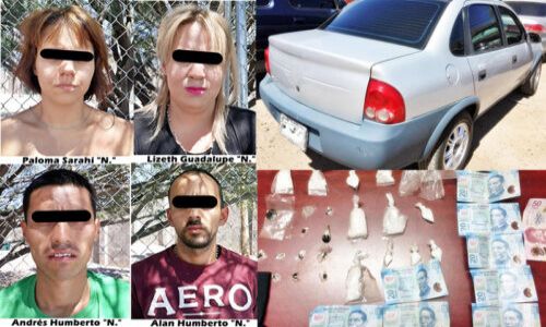 Las cuatro personas, dos mujeres y dos hombres, fueron vinculados a proceso por el Juez Oral por el delito de posesión con fines de venta de metanfetamina y heroína, dentro de la causa penal 1148/2019 en audiencia celebrada el viernes 10 de mayo.