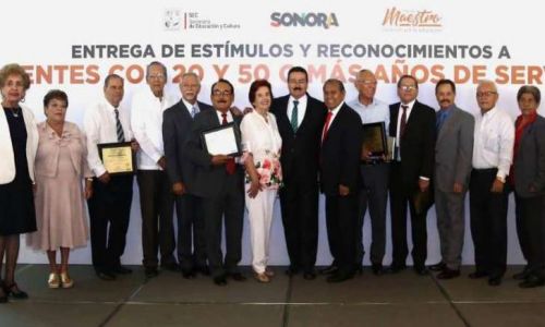 Durante el evento también se entregó reconocimiento y estímulo económico a docentes de Hermosillo con 20 años de servicio.