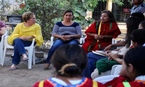 La presidenta del Sistema DIF Estatal, Margarita Ibarra Platt, se reúnen con mujeres y hombres de esta comunidad indígena, quienes están en busca de nuevas y mejores oportunidades para las familias.