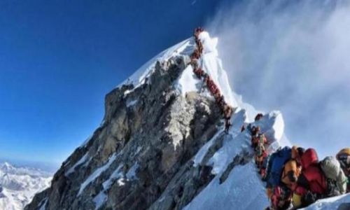 La inusual aglomeración, provocó que los alpinistas tardaran más de 2 horas en lograr llegar a la cumbre.