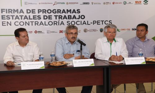 Miguel Ángel Murillo Aispuro, contralor del Estado, quien estuvo acompañado por el delegado estatal de la Secretaría de Bienestar, Jorge Taddei Bringas, informó que en los instrumentos formalizados se sustenta el acompañamiento que realiza el Órgano de Control del Estado, para promover la participación ciudadana en la vigilancia de los recursos públicos asignados a los programas sociales, a fin de contribuir con ello a un ejercicio legal y transparente de los mismos, para que sus beneficios lleguen con oportunidad a quienes los requieren.