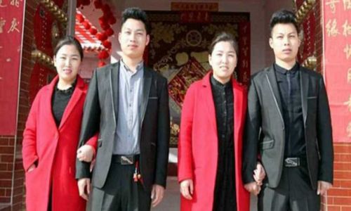 Los hermanos idénticos Zhao Xin y Zhao Xun, de Yuncheng, en la provincia de Shanxi, contrajeron a mediados de febrero matrimonio con las gemelas Yun Fei y Yun Yang, del pueblo vecino, con las que llevaban saliendo ya un tiempo.