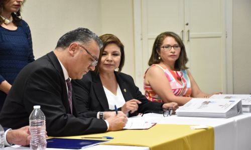 En la ceremonia protocolaria, la vicerrectora Adriana Leticia Navarro Verdugo ofreció la bienvenida a las integrantes del Comité de Caceca, integrado por José Luis Hernández Flores y Francisco Martínez Rivera, académicos del Instituto Politécnico Nacional y evaluadores de la Licenciatura en Administración, y Mariza Aguirre Fimbres, de la Universidad Estatal de Sonora, y Arely Eunice López Peralta, del Instituto Tecnológico de Sonora, visitadoras de la Licenciatura en Contaduría Pública.