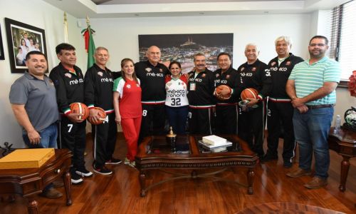 Reconoce alcaldesa Celida Lopez representacion del equipo de baloncesto Mexico 65 y mas