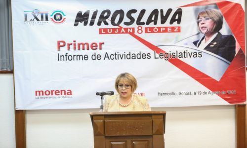 Hermosillo, Sonora (19 de agosto de 2019).- La diputada Local por el Distrito VIII de Hermosillo, Miroslava Luján López rindió su primer informe de trabajo en el recinto legislativo, donde destacó que la contribución en la construcción de acuerdos y políticas públicas que incidan positivamente en el desarrollo de Sonora, representa su principal eje de trabajo para responder y mejorar la calidad de vida de los ciudadanos.