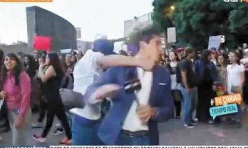 Elementos de la Policía de Investigación (PDI), detuvieron a Luis Ángel Estrada Sánchez, “Chupas Estrada”, quien durante la marcha del viernes pasado, agredió al reportero de ADN40, Juan Manuel Jiménez.