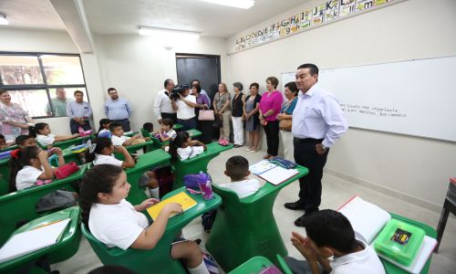 Junto con la directora, Francisca Alatorre Ortiz; recorrió los salones de todos los grados, la dirección y el aula de medios, y constató el equipamiento del plantel.