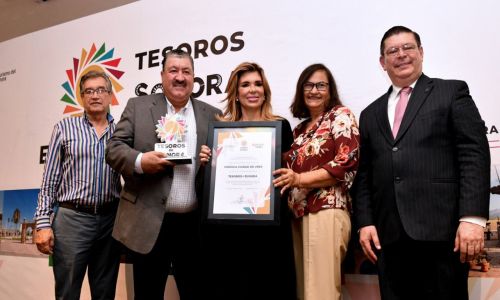 Hermosillo, Sonora, septiembre 21 de 2019.- Por su riqueza histórica y para incentivar y reconocer a los municipios y comunidades que explotan su potencial turístico en la entidad, la gobernadora Claudia Pavlovich Arellano encabezó la entrega del galardón “Tesoros de Sonora” a Ures, Banámichi, Caborca, Cócorit y San Carlos.