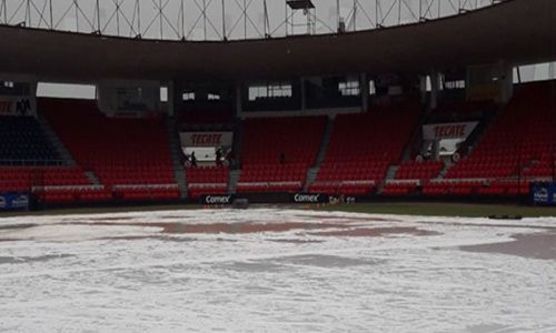 A pesar del trabajo de la cuadrilla de mantenimiento del estadio Manuel “Ciclón” Echeverría la lluvia continuó este lunes e hizo imposible que el juego se llevara a cabo.