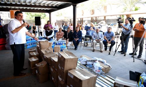 Alberto Flores Chong, coordinador estatal de Protección Civil, informó que en esta ocasión se entregaron insumos para seis municipios que consisten en: despensas, láminas galvanizadas, cobertores, colchonetas, impermeables, guantes de carnaza, botas de plástico, rollos de hule, costales, kits de limpieza, kits de higiene y agua embotellada.