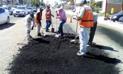 Con una cantidad de 152 toneladas de asfalto, el Ayuntamiento de Guaymas intensificó los trabajos de bacheo en todo el casco urbano.