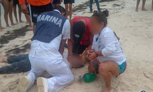 Una tercera acción se llevó a cabo cuando elementos navales desplegados en el puesto de socorro de Playa del Niño en Cancún fueron alertados debido a que una mujer de 60 años de edad y de nacionalidad mexicana, se encontraba inconsciente y con signos vitales débiles.