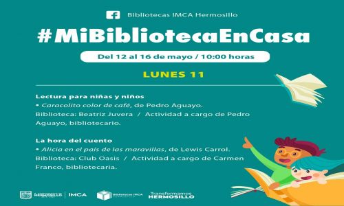 Comentó que las transmisiones serán del 8 al 16 de mayo por medio de las páginas de Facebook IMCA Hermosillo y de Bibliotecas IMCA Hermosillo, así como por www.imcahermosillo.com.mx,