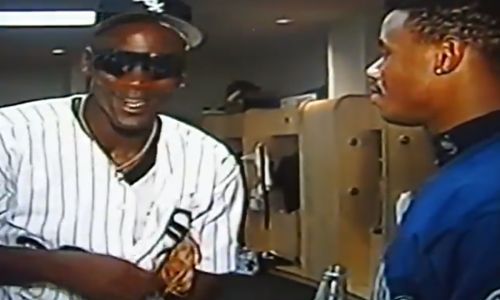 Era el año 1993, Jordan había anunciado su retiro de la NBA y probaba suerte como beisbolista en las sucursales de los Chicago White Sox. Aprovechando su fama mundial, His Airness llegó hasta las entrañas del Camden Yard de Baltimore vestido como beisbolista, en donde los peloteros se preparaban para el Juego de Estrellas. Ahí apareció el astro buscando a una joven sensación de nombre Ken Griffey Jr.