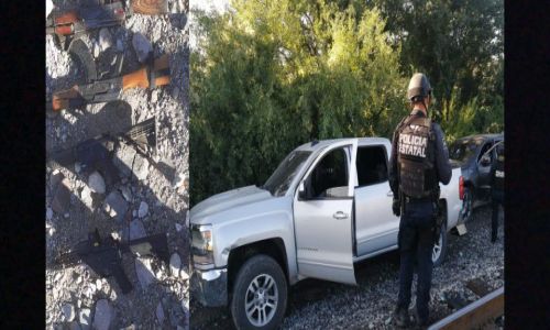 Durante el operativo los policías estatales localizaron 7 vehículos de diversos modelos y en los cuales se encontraron cartuchos útiles de diferentes calibres, un par de granadas de fragmentación, 3 armas largas M4 y una corta, 2 AK 47 de las conocidas como cuerno de chivo, además, una escopeta.